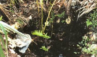 The pine rockland is an open canopy with little underbrush. But if you look carefully in the small solution holes along the trail, you will see thriving colonies of delicate native herbs, orchids and ferns with tiny fruits and flowers, as well as interesting insects, snakes and even fish.